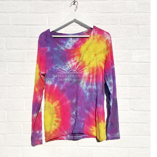 Long Sleeve Tie Dye Top UK 18 in Yellow, Pink and Purple