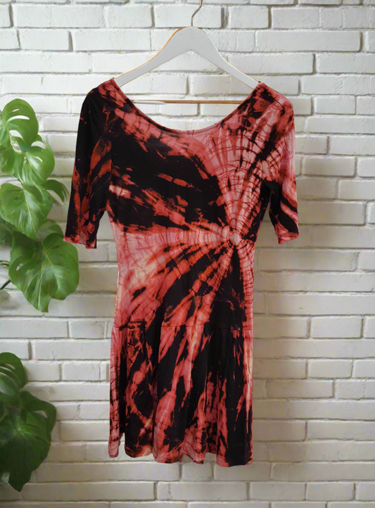 Shibori Dress | Boho Festival Tie Dye | UK 10 / US 6 | Black & Peach