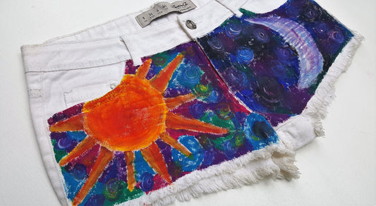 Hand Painted Sun & Moon Denim Shorts UK 8 / US 4