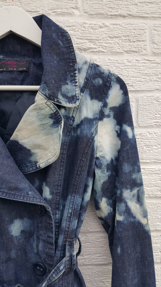Tie Dye Denim Coat Bleach Ethical Upcycle UK 10 / US 6 Women's