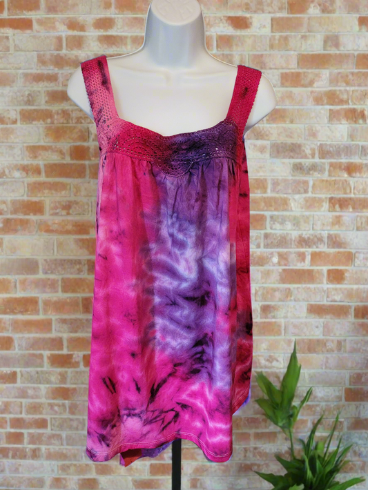Tie dye Crochet Mini Dress Tie Dye UK 12 Pink & Purple