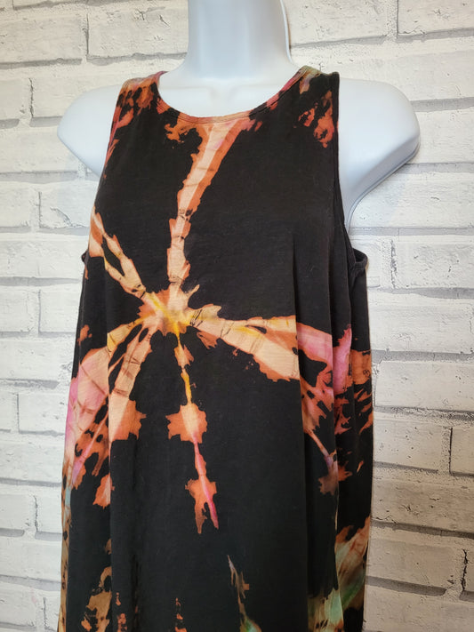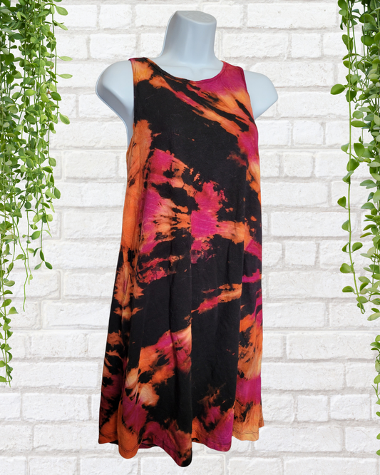 Tie dye Dress | Orange Pink Black | UK 10 US 6 | Organic Cotton | Sustainable Summer Fashion