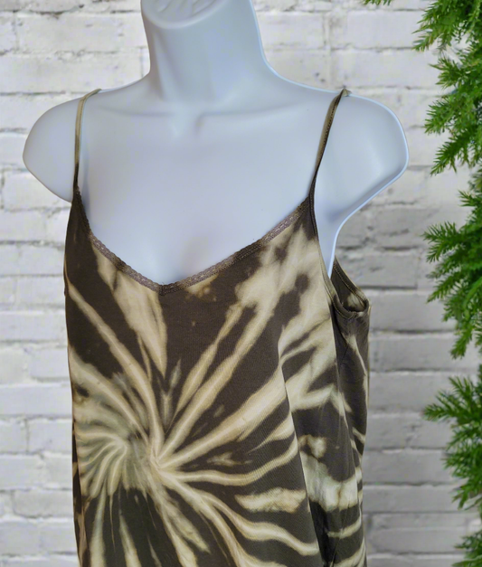 Khaki Green Slip Dress | Tie Dye | Organic Cotton | Ethical Women's Fashion | UK 12 / US 8