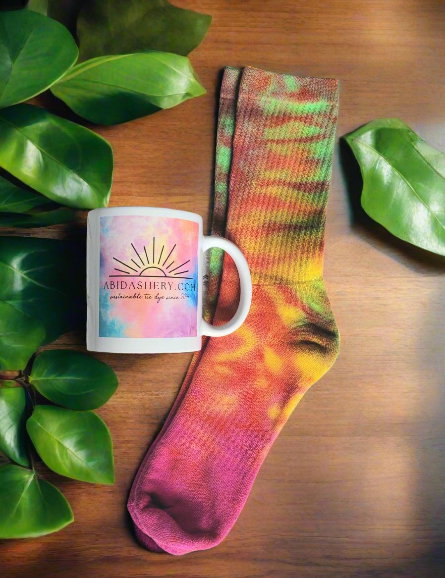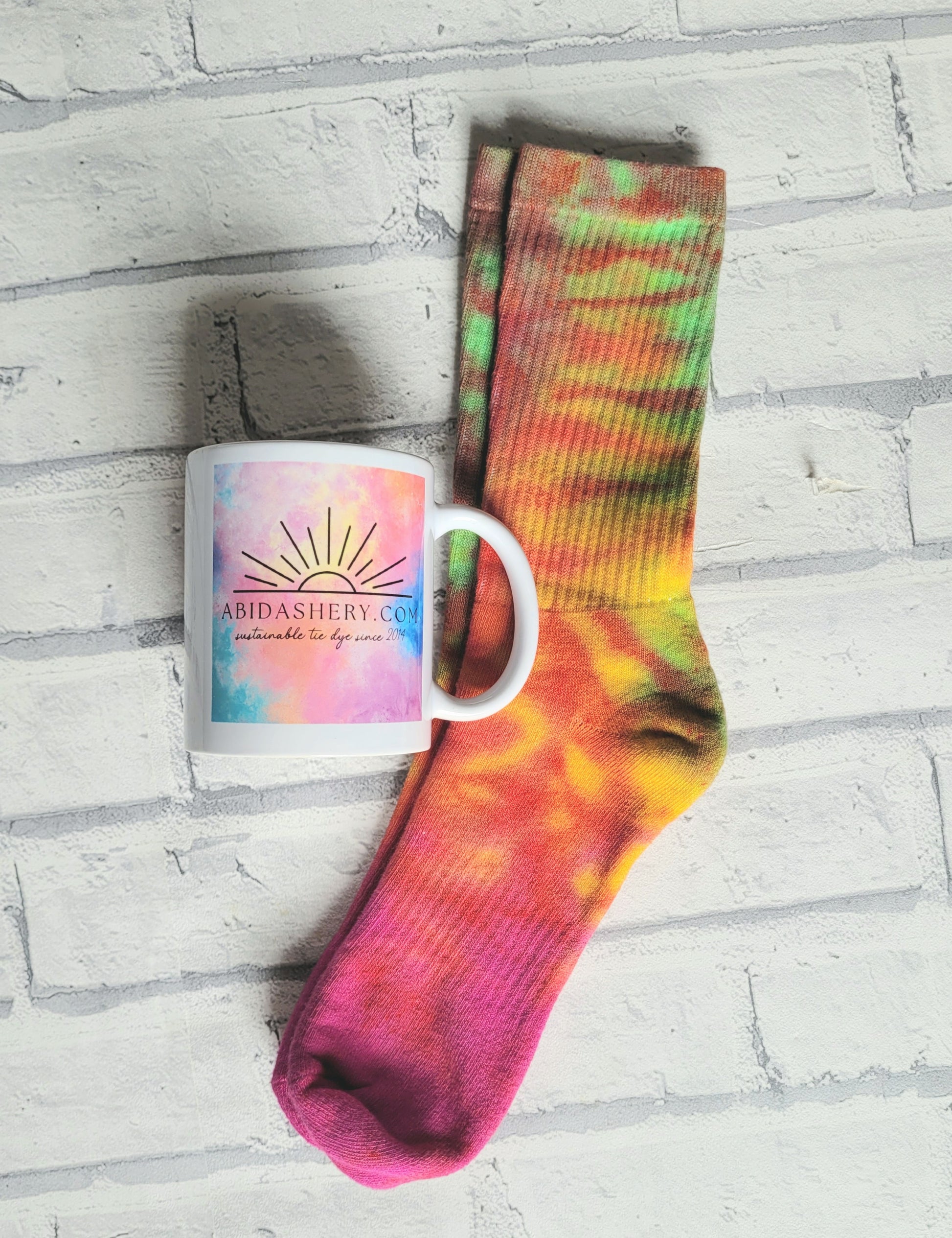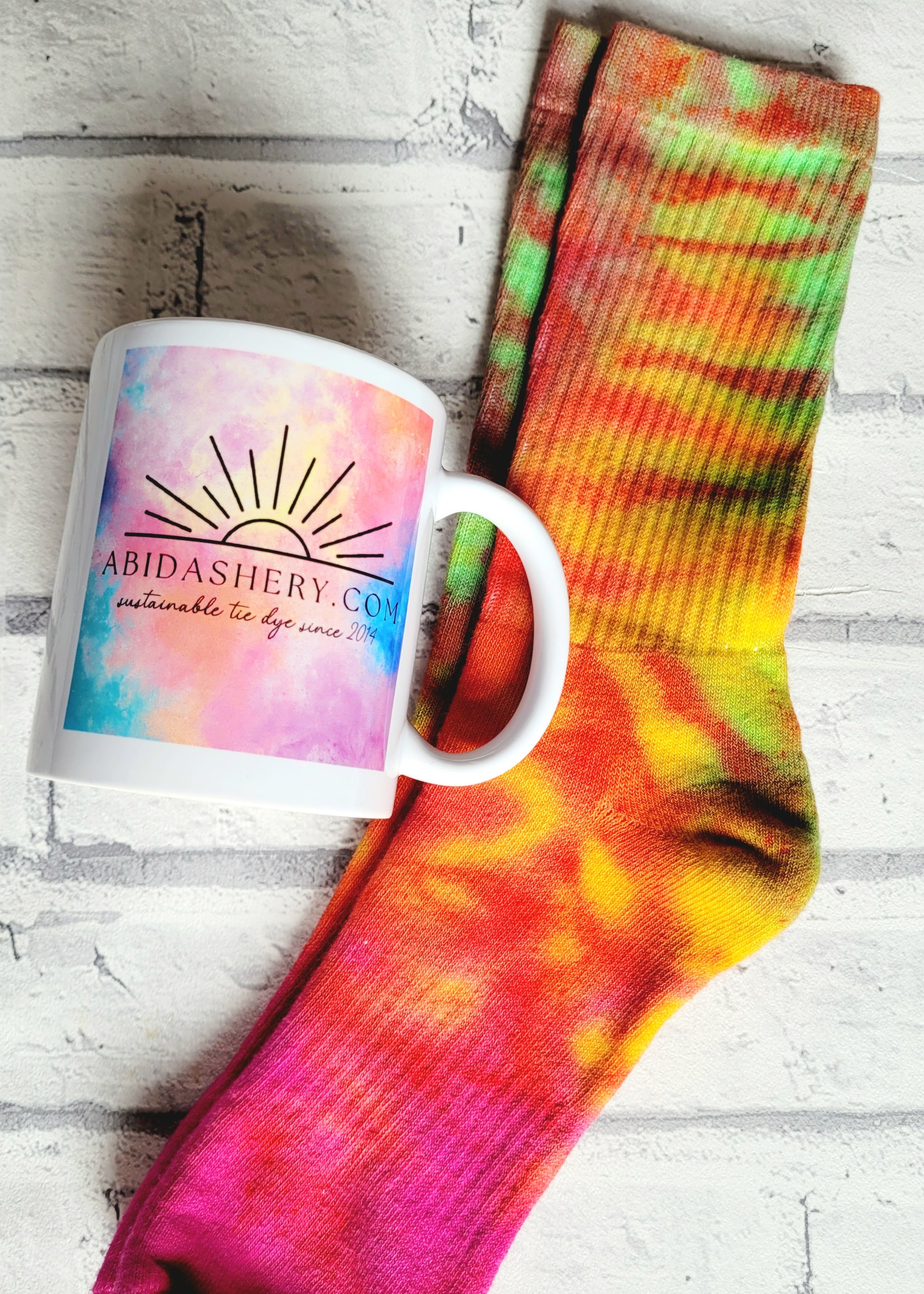 Bamboo tie dye unisex sports socks with AbiDashery mug gift set, socks available in assorted colours, a colour will be chosen for you at random, mug is shade shown only.