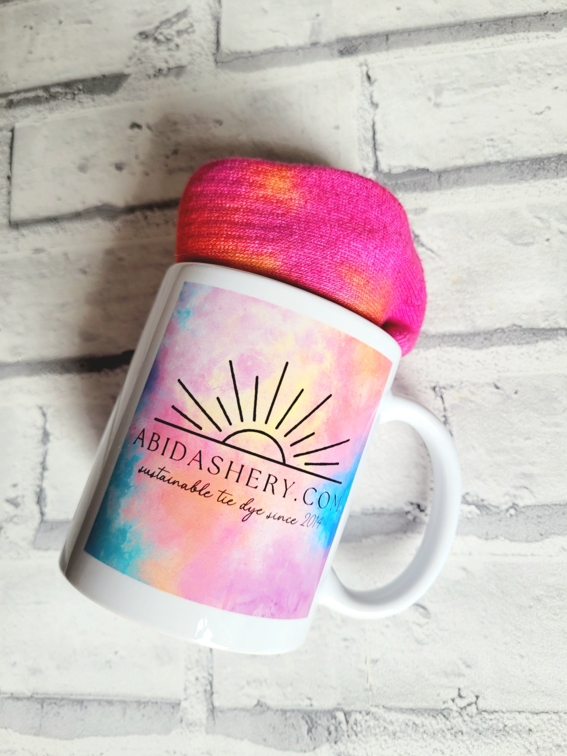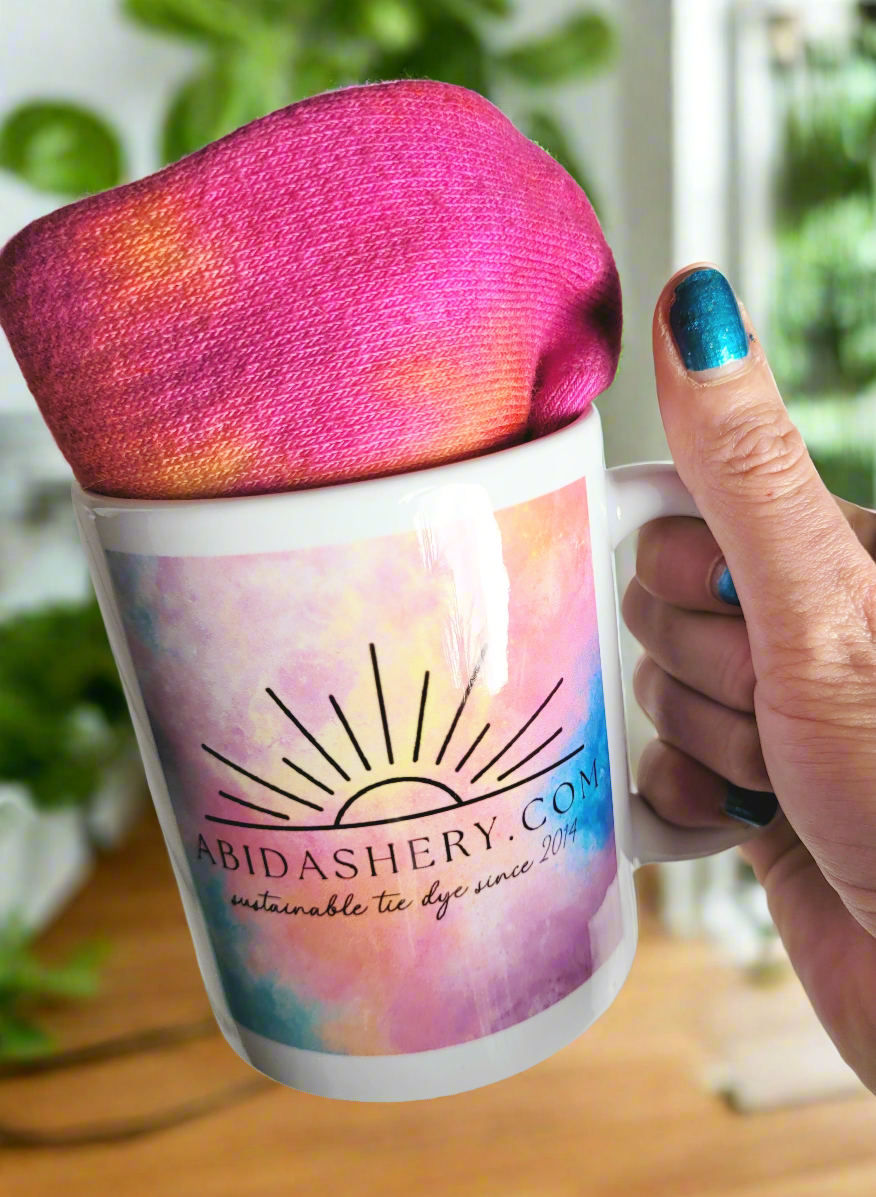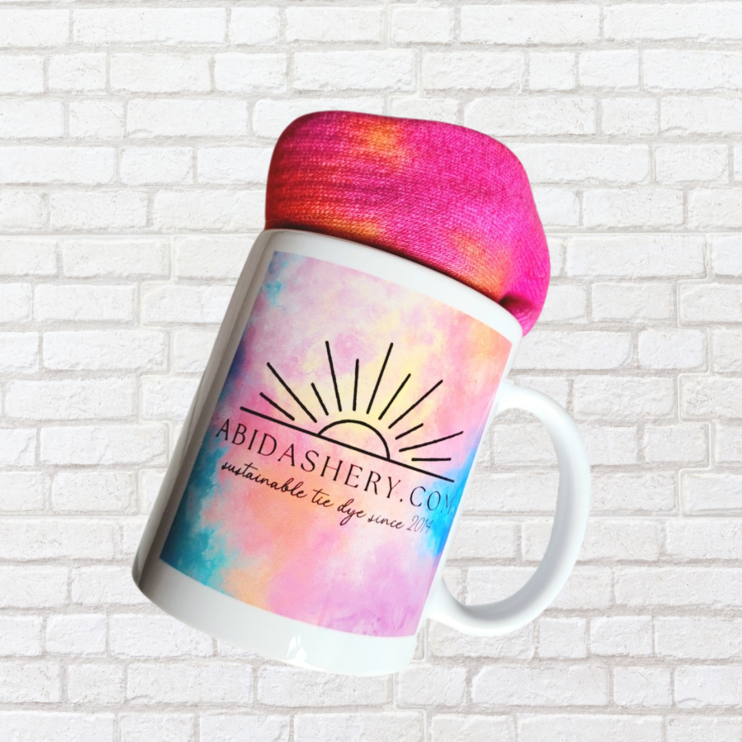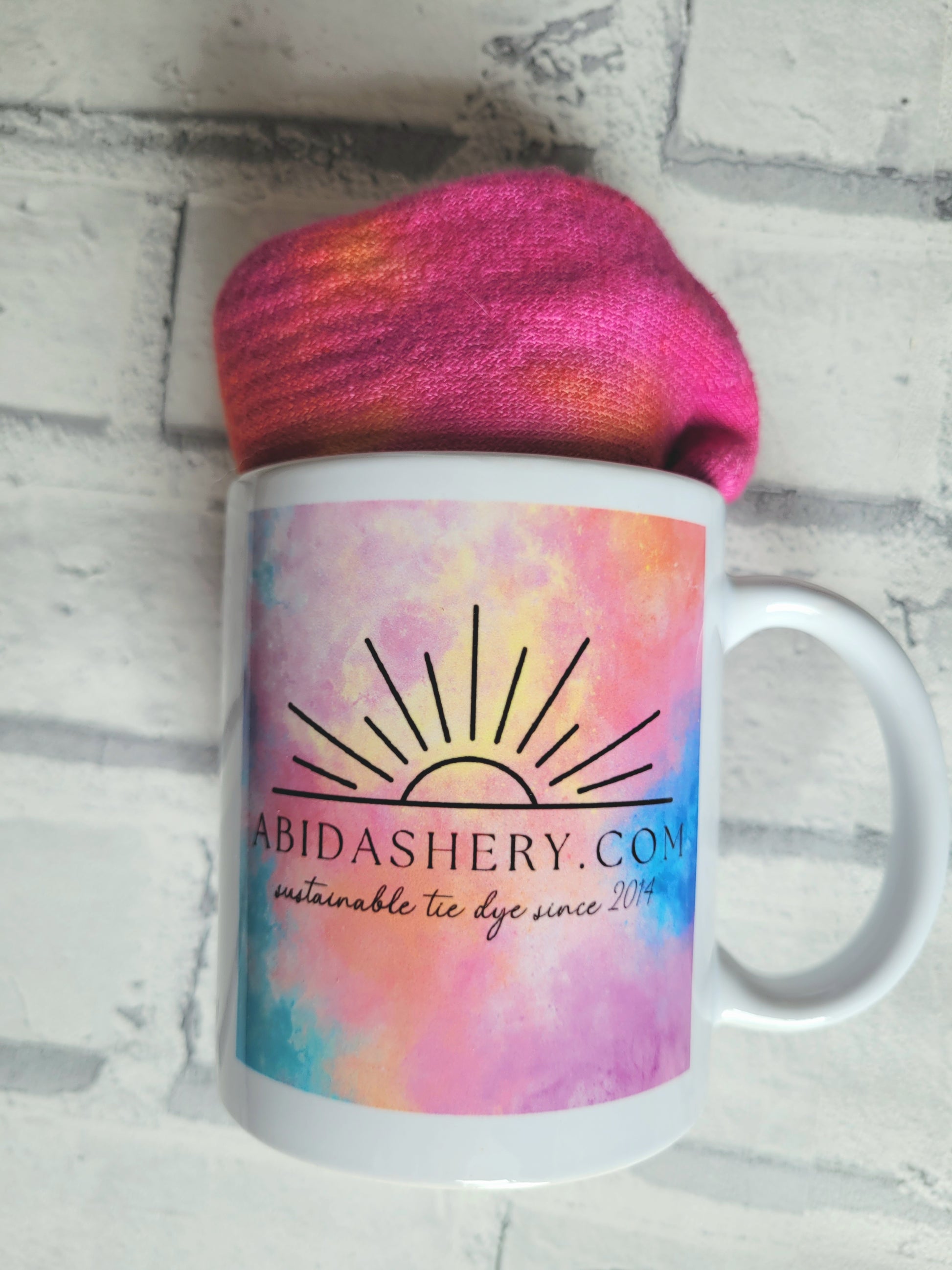Bamboo tie dye unisex sports socks with AbiDashery mug gift set, socks available in assorted colours, a colour will be chosen for you at random, mug is shade shown only.