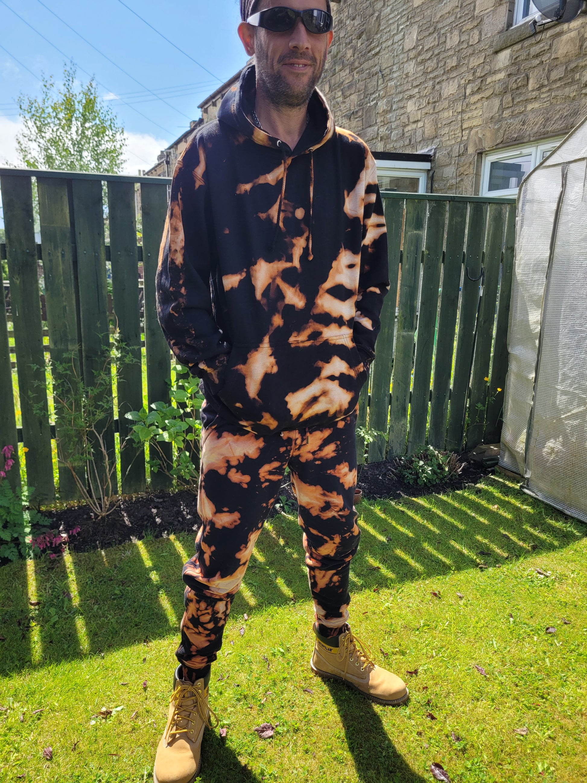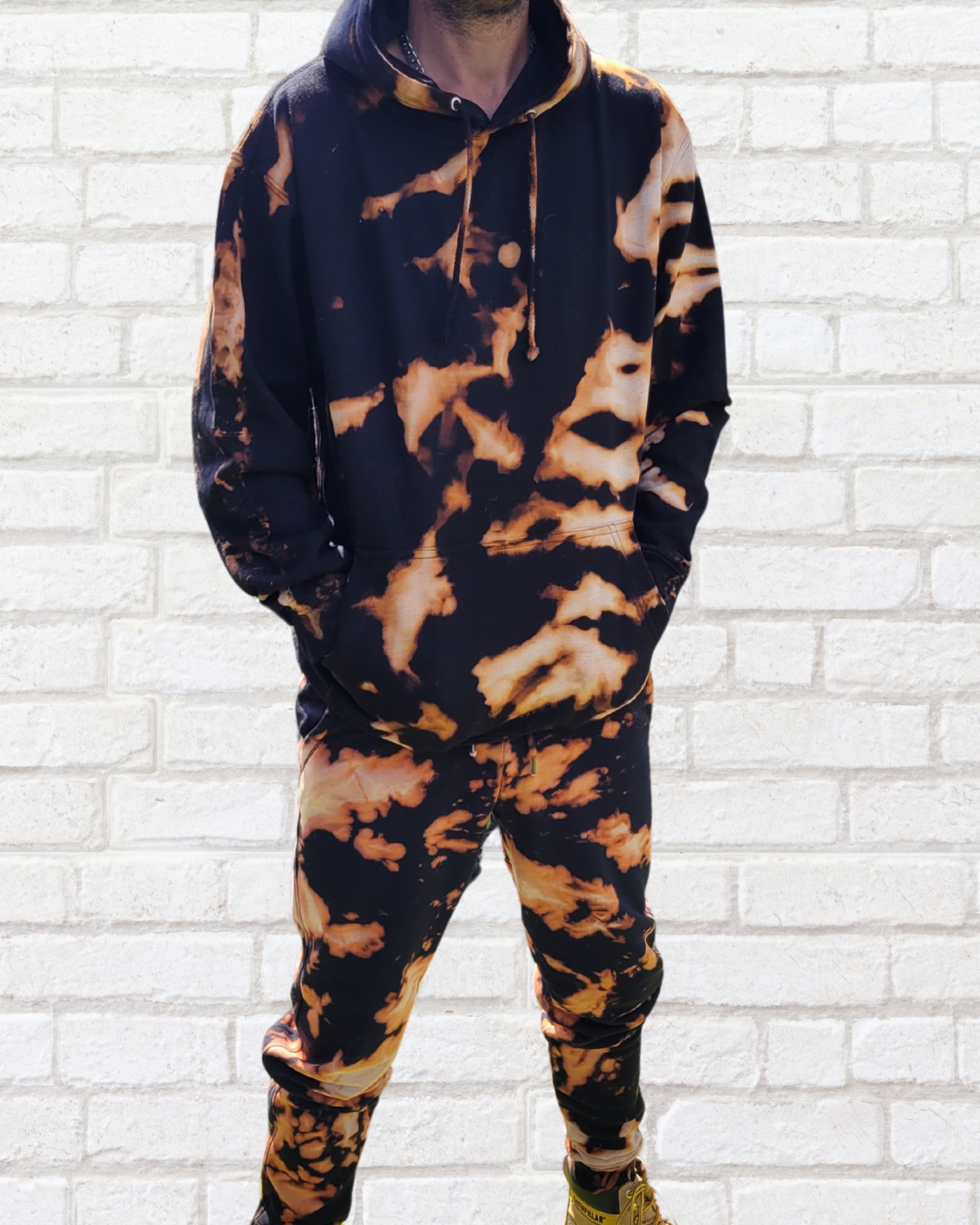 Bleached tie dye hoodie, in black & orange shades, the perfect winter cover up for the coming season.