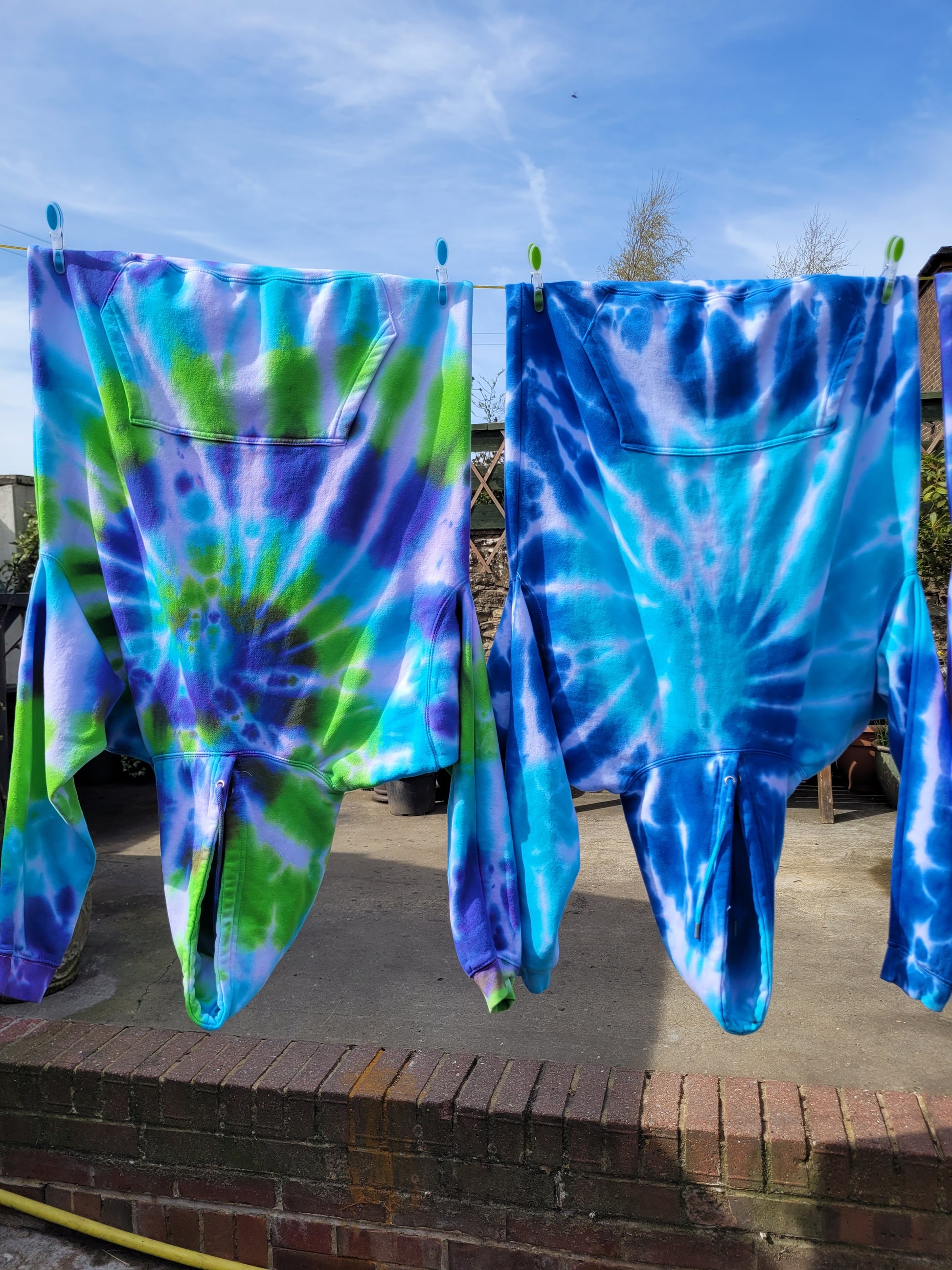These one of a kind hoodies are hand dyed to order, in 80% Organic Cotton, 20% Recycled Polyester, double fabric hood, front pouch pocket, ribbed cuffs and hem, the hoodies we use are PETA vegan approved and dyed using eco-reactive vegan dyes.