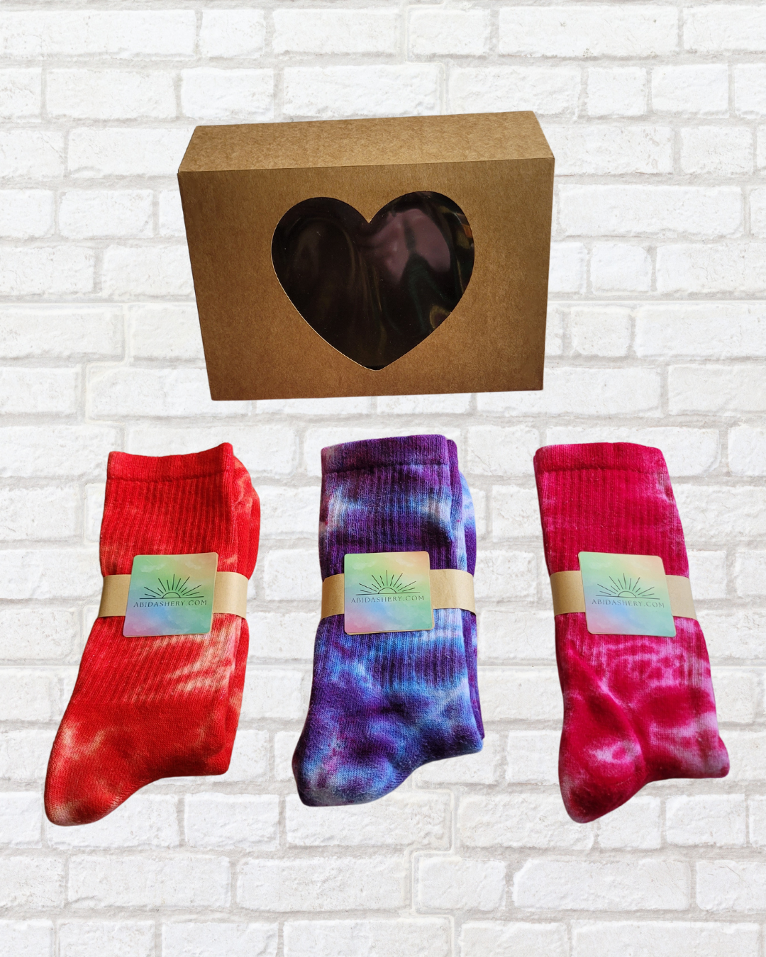 Heart Gift Set Sustainable Cotton Tie Dye Sports Socks Unisex
