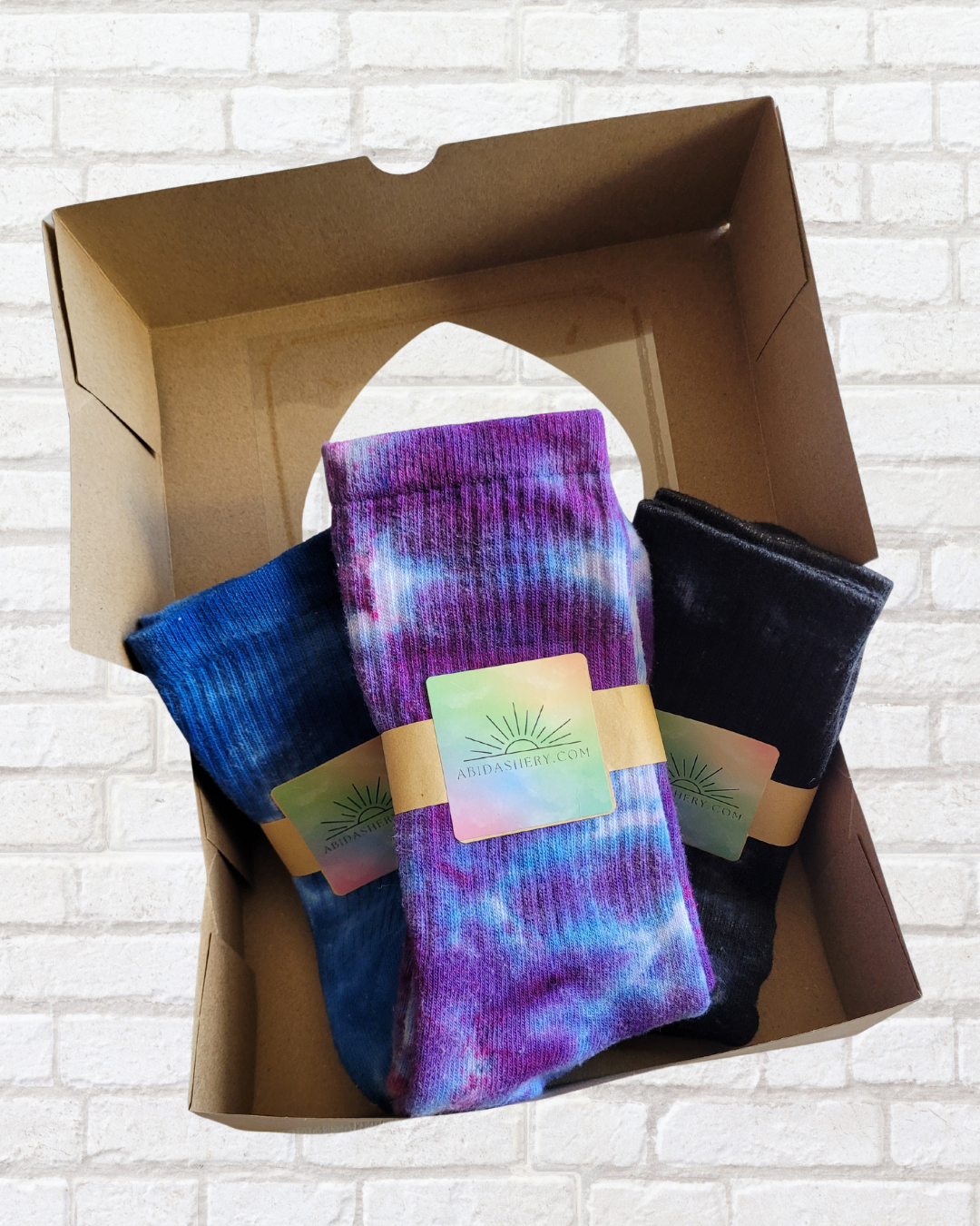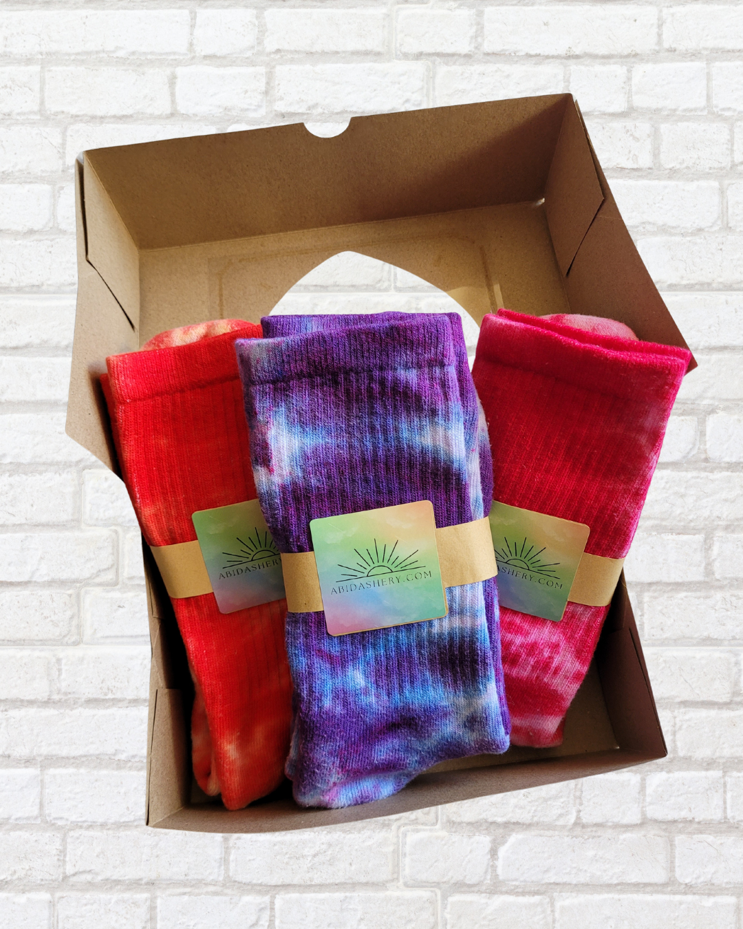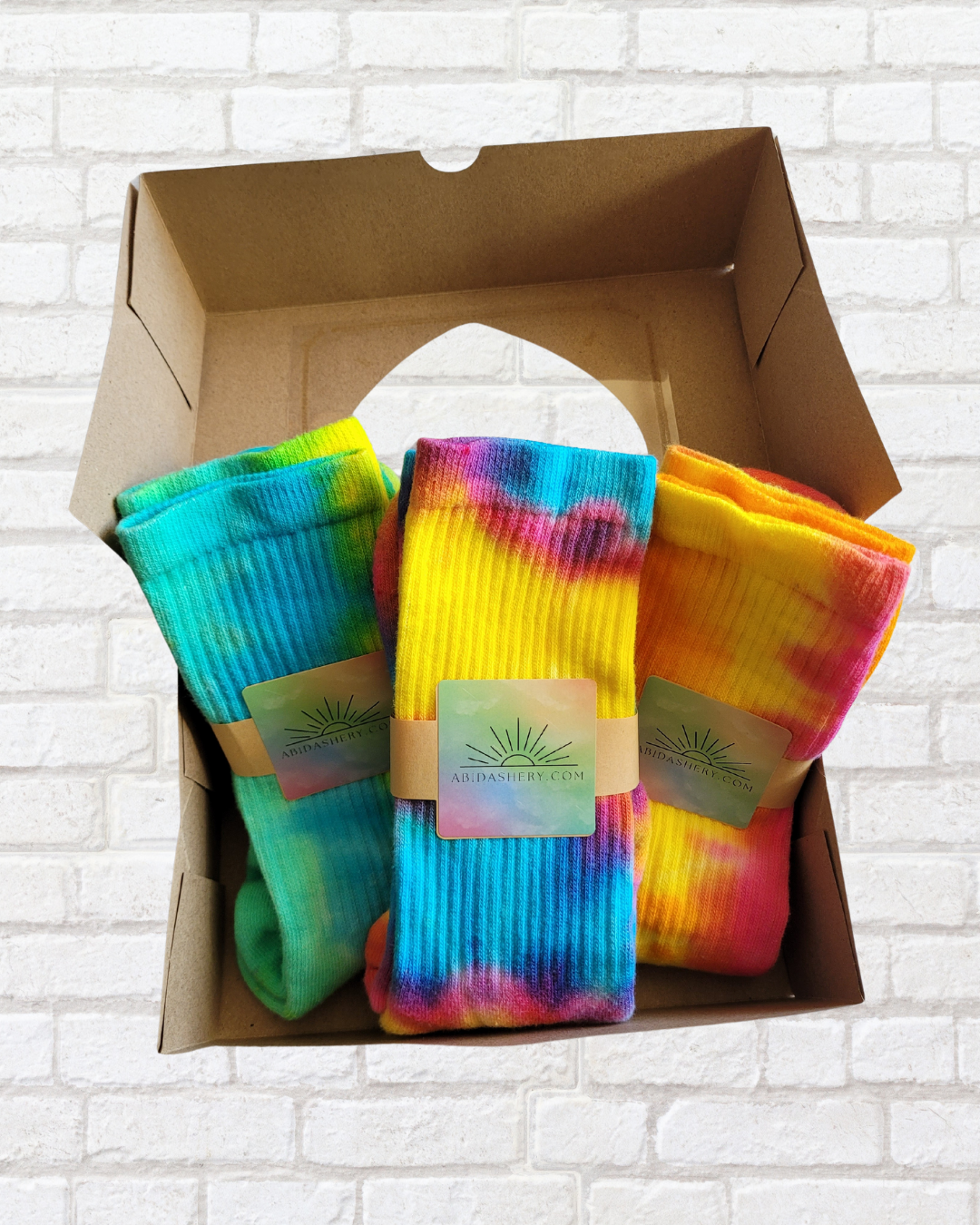 Spread the love and sustainability this Christmas with our tie dye sports socks gift set.