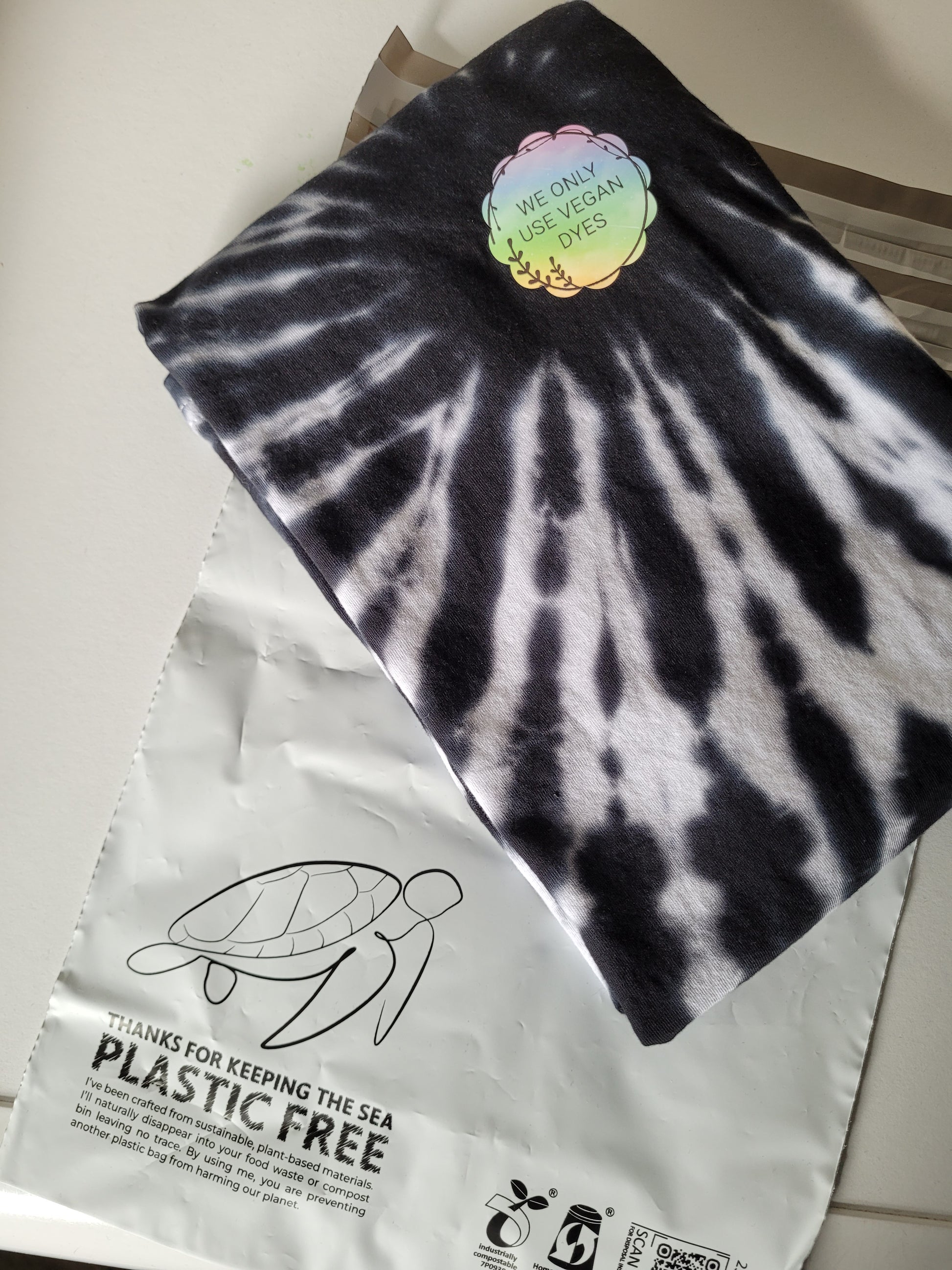 Expertly hand-dyed in a striking black tie dye, this men's organic cotton shirt is both unique and sustainable and hand dyed using vegan friendly dyes.