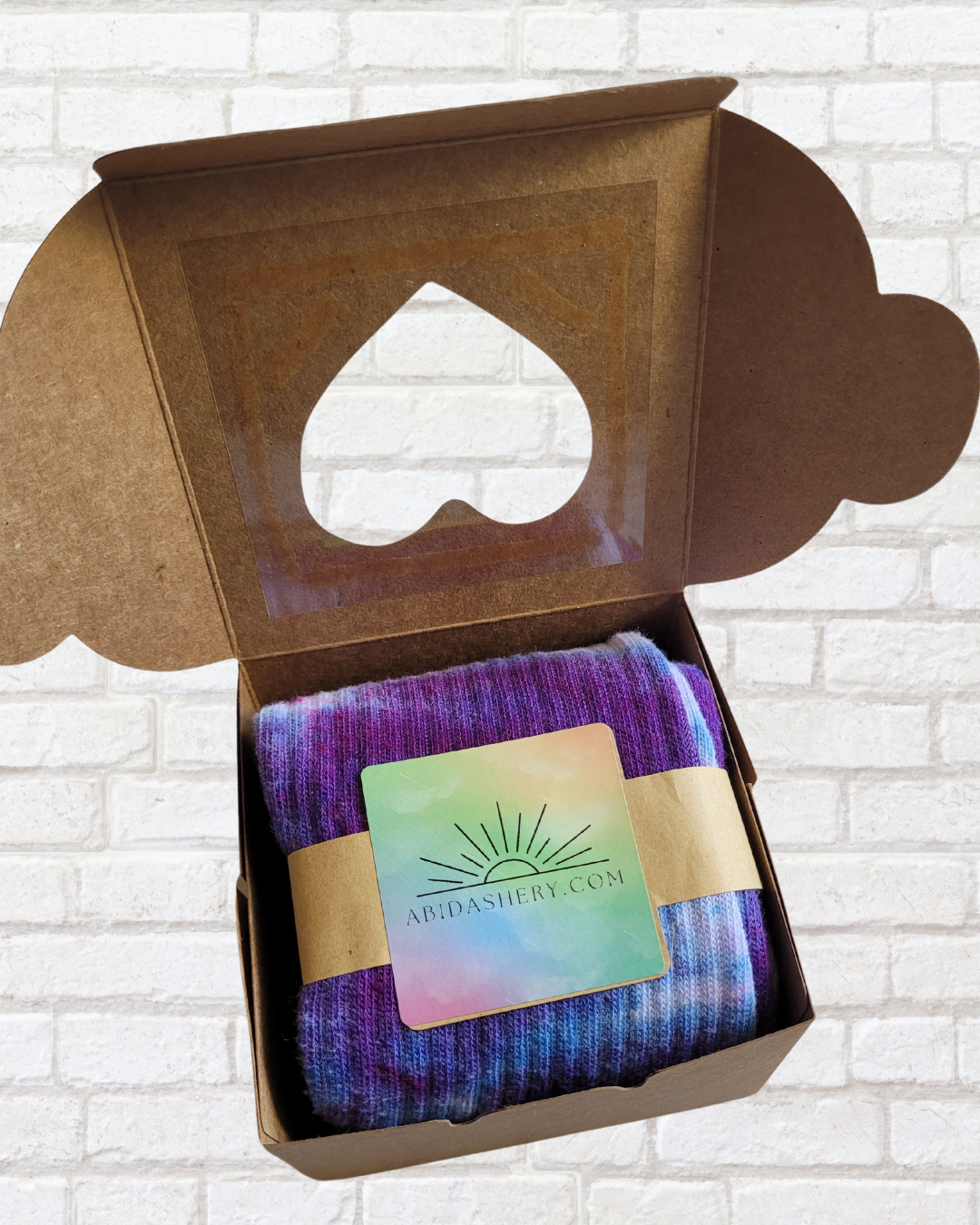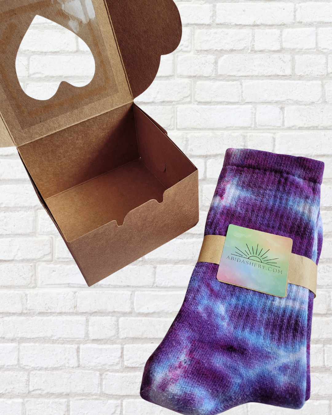 Sustainable cotton sports socks x1 pair in assorted mixed colours, hand dyed using eco-reactive dyes, boxed in heart box and ready to gift!